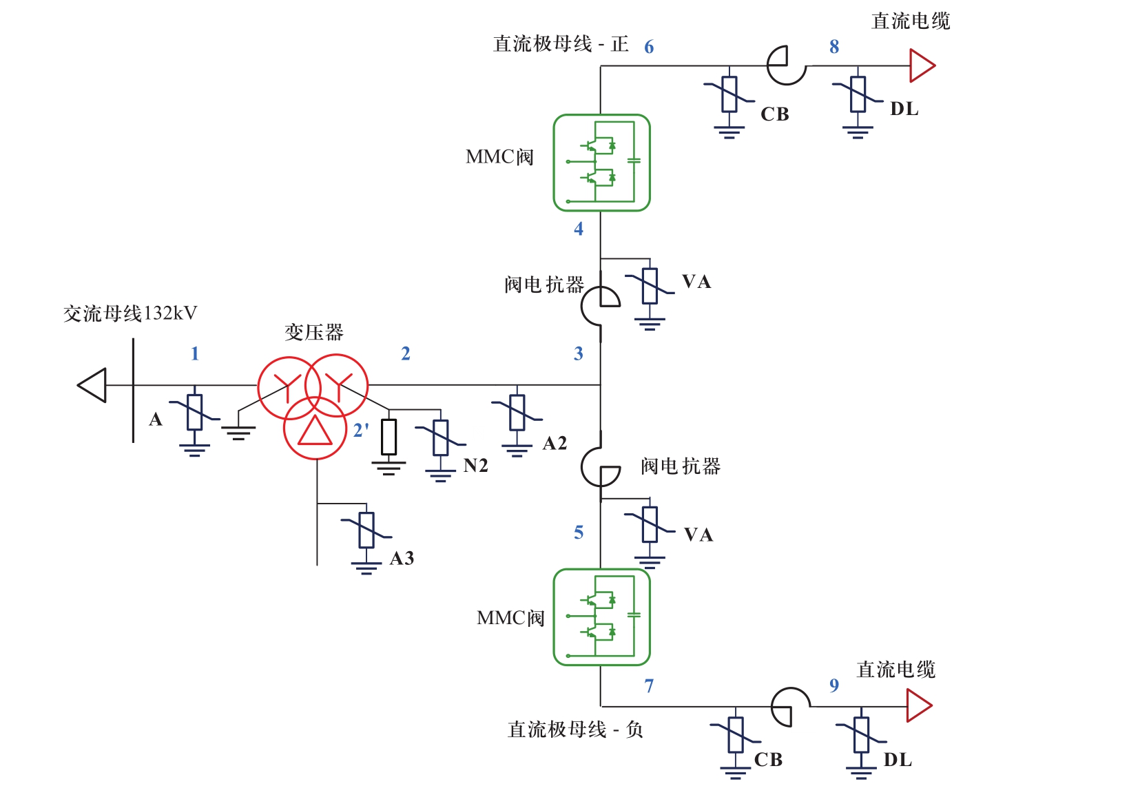 (2)直流侧产生的过电压,同样地,通过直流线路/电缆避雷器来限制;