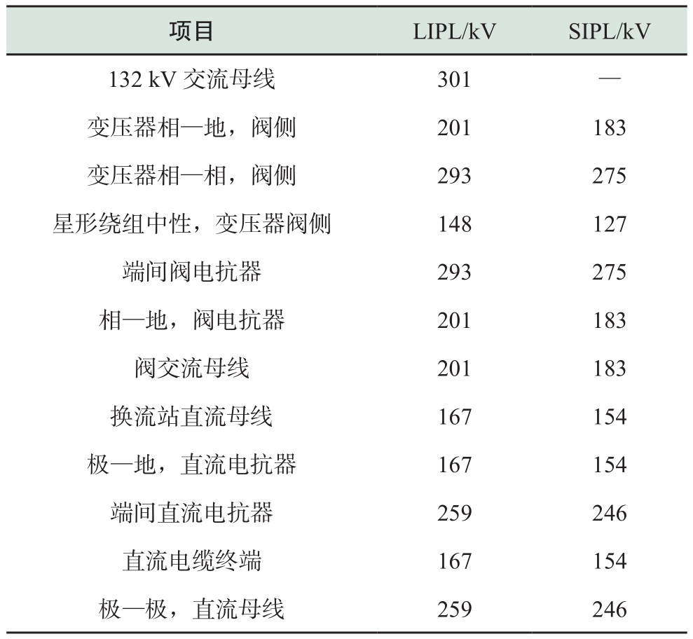 (3)对于换流站内过电压,关键设备应通过组件连接的避雷器直接保护。