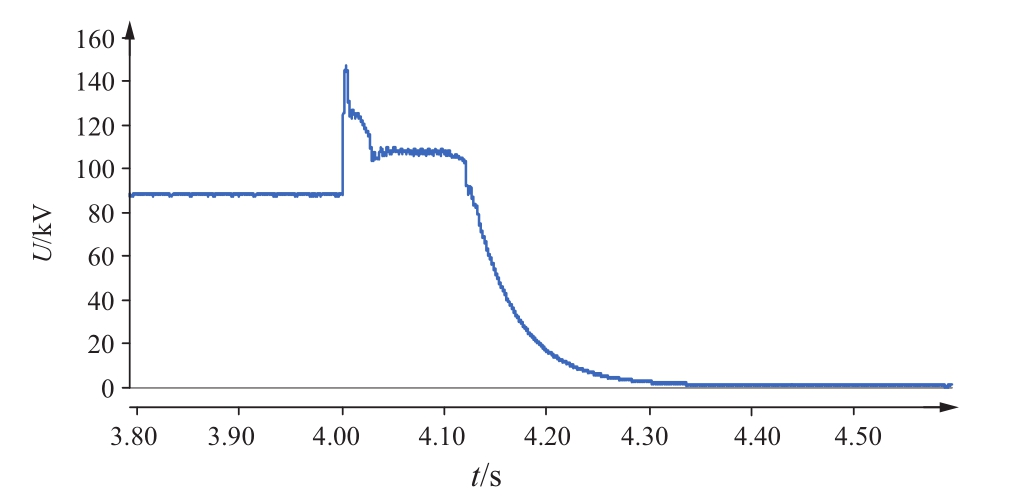根据英方业主要求,故障清除时间(包括健全极放电)应小于500 ms,因此为每个极的直流电缆设计了放电电阻,直流电缆放电过程如图5所示,放电特性为