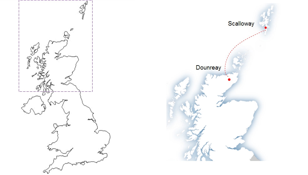 英国Shetland岛位于苏格兰最北部200多公里的海上,未与英国大陆电网相连,岛上用电的主要来源勒威克(Lerwick)发电厂和萨洛姆湾(Sullom Voe)发电厂将在未来几年完成服役年限。为了解决岛上的可靠供电问题,规划了英国Shetland柔性直流输电工程,新建Dounreay和Scalloway两座换流站,直流电压±88 kV,额定容量80 MVA,输电距离约250 km,计划2020年年底投运。