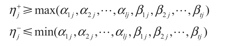 where l+t=m,and max(α1j,α1j,…,αlj,β1j,β2j,…,βtj) denotes the maximum value of m (where m is a cardinal numeral) weight values assigned to the j-th index by m different weighting methods; min(α1j,α1j,…,αlj,β1j,β2j,…,βtj) denotes the minimum value of m weights assigned to the j-th index by m different weighting methods.